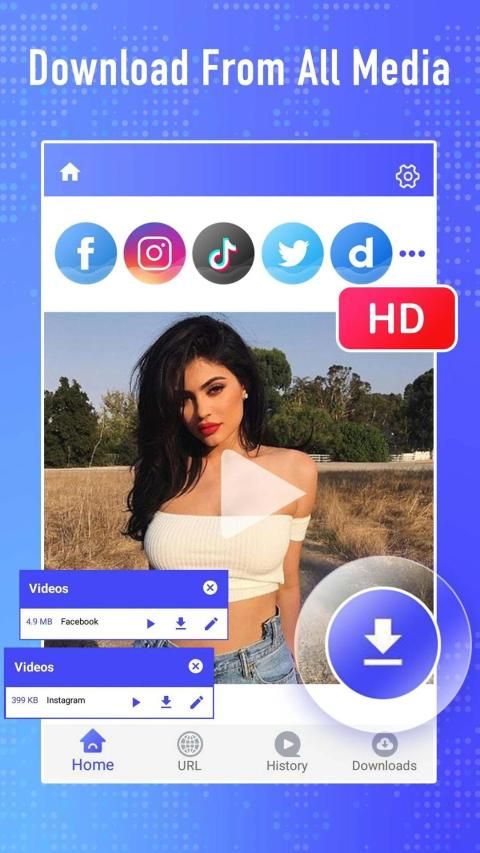 - एचडी वीडियो डाउनलोड सहित विभिन्न आकारों के साथ सभी वीडियो का समर्थन करें।