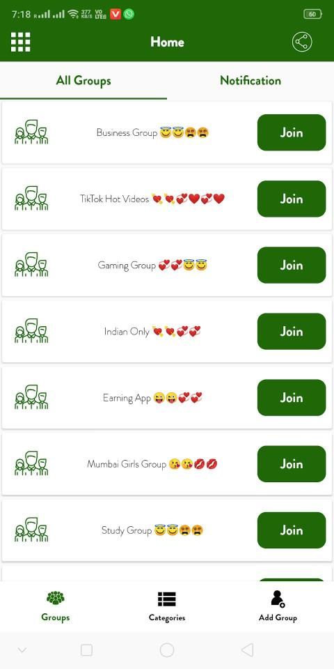 In Our App you can get Groups According to App Category.