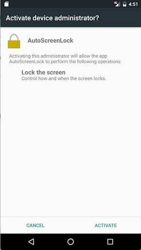 Notes: This app uses the Device Administrator permission in order to be able to lock the screen. You must make the application an admin for the application to do its intended function.