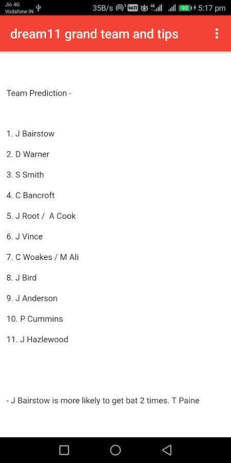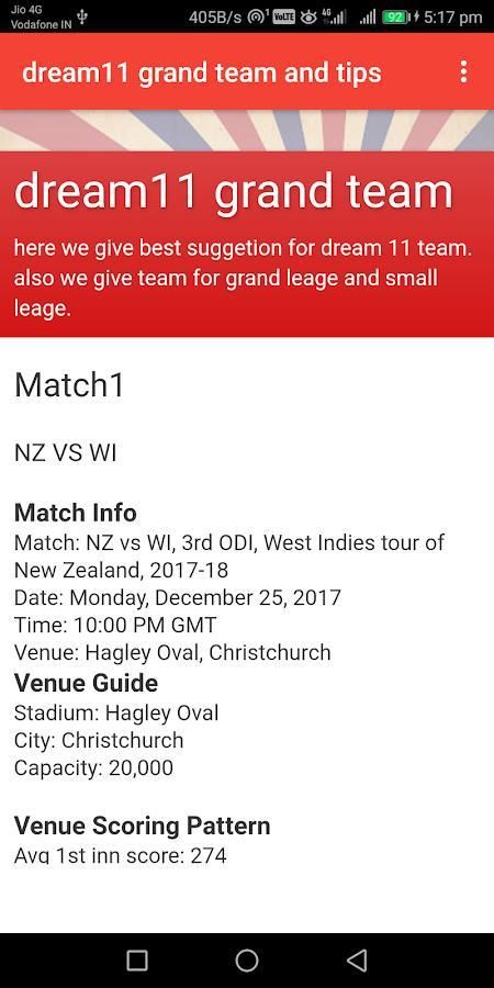 यहाँ आप की जानकारी और सभी dream11 और अन्य कल्पना क्रिकेट मैचों का सुझाव प्राप्त होंगे।