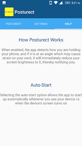 It notifies the user when they use their phone in a stressful angle by changing the screen brightness, thereby allowing the user to correct their posture.