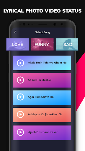 केवल एक क्लिक के साथ अपनी तस्वीरों से कोई भी गीतात्मक वीडियो बनाएं।संगीत के साथ गीतात्मक वीडियो स्टेटस निर्माता डाउनलोड करें और अपनी सुंदर तस्वीर को चयनित गीतात्मक वीडियो में रखें और अपने प्रियजनों के साथ साझा करें और अपना प्यार दिखाएं।