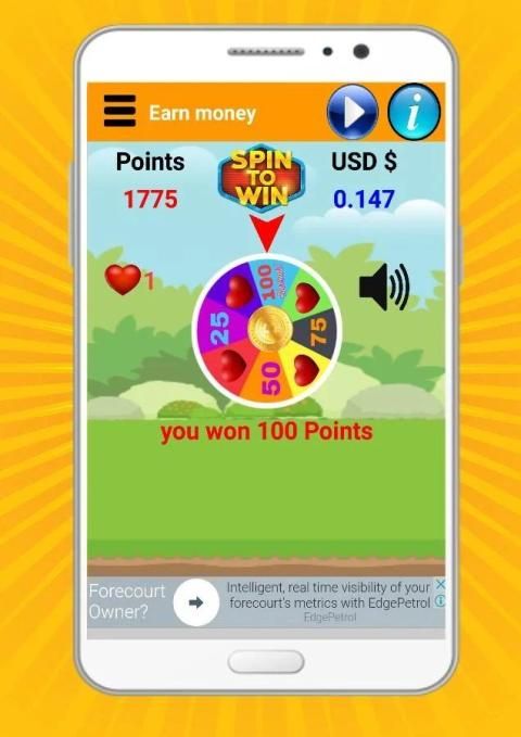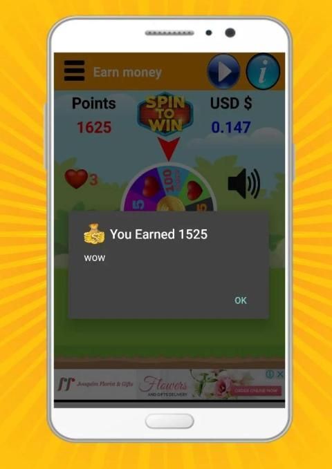 कमाएँ पैसे USD $ एक कताई खेल है जिसमें आप असली नकदी कमा सकते हैं जाता है और एक क्लिक में अपने खाते में वापस लेने