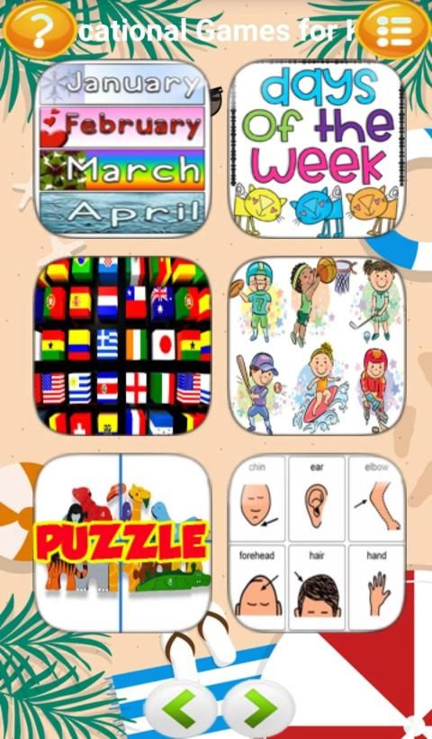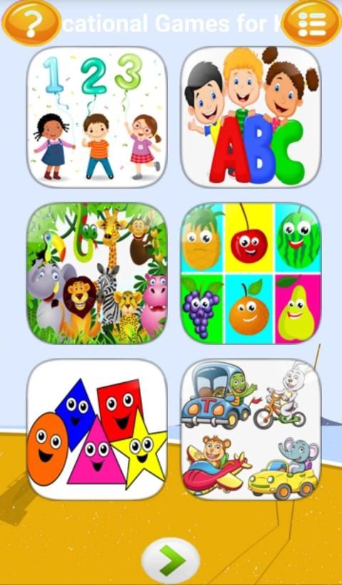 बच्चों के लिए शैक्षिक खेल - मेनू: