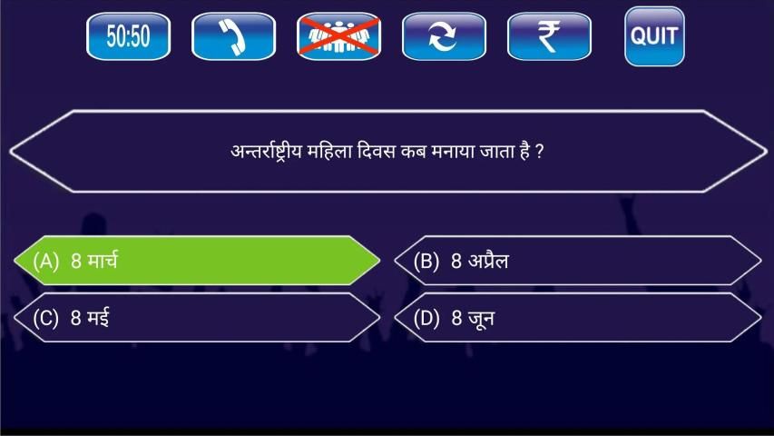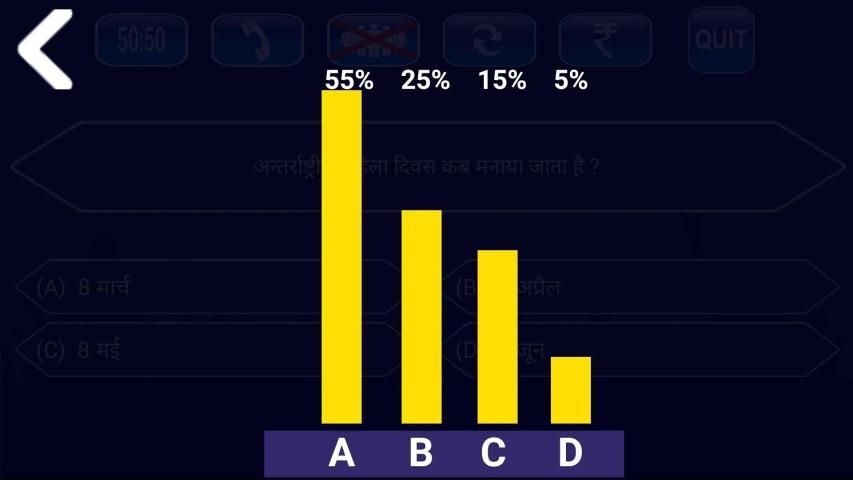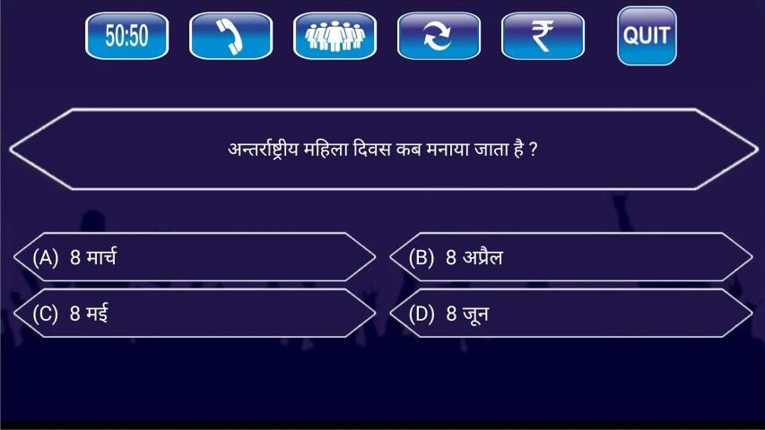 3: - आपके पास 4 लाइफलाइन, 'फिफ्टी-फिफ्टी', 'फोन फ्रेंड', 'ऑडियंस पोल' और 'चेंज क्वेश्चन' हैं।