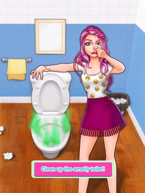 > Clean up the smelly toilet