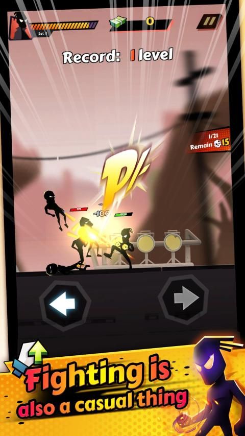 सीखने में आसान। आपके पास स्टिकमैन चल रहा है और आप उन्हें मारने के लिए दाएं या बाएं हाथ मारेंगे।