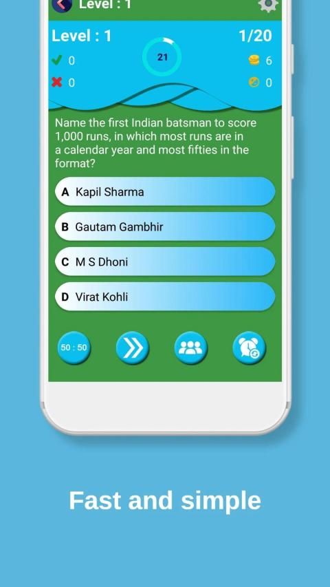 The game is an IQ test of international & IPL crickets from around the world. You have to guess by the question and select the right answer from four different options. Play and challenge your friends and family for the high scores with easy to use game interface. The cricket game quiz is an easy way to test and learn new knowledge of famous cricket players.