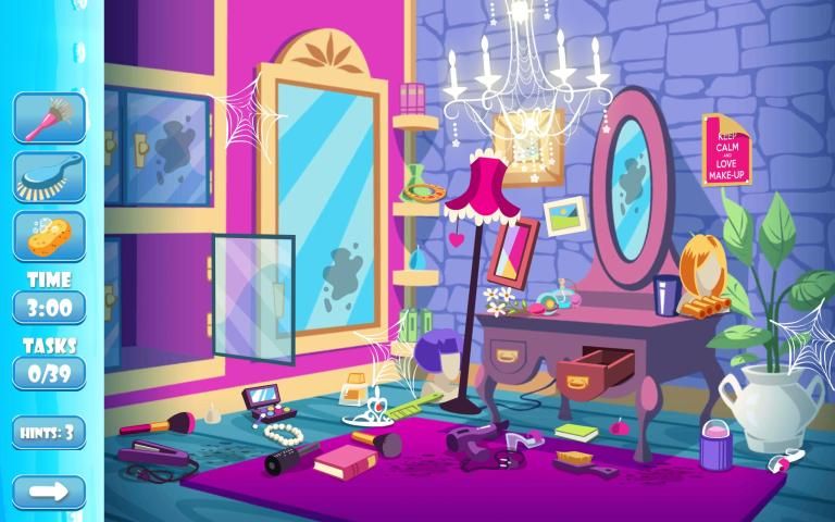 ◈ First clean up the rooms of Baby House like kitchen and bedroom. Wipe up dust, collect garbage in dustbin and toys into the toy basket, leave nothing dirty and fix the broken tiles with creative jigsaw puzzle! Re-arrange the dressing table things like lipsticks and creams.
