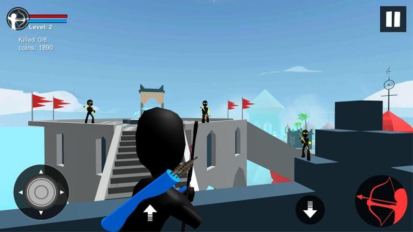 विशेष जादुई प्रभाव। तीर चलाने के लिए और पीले स्टिकमैन दुश्मन को गोली मार, सिक्के कमाने, नए कवच, एक शक्तिशाली धनुष के साथ stickman से लैस और एक लड़ाई के लिए जाना