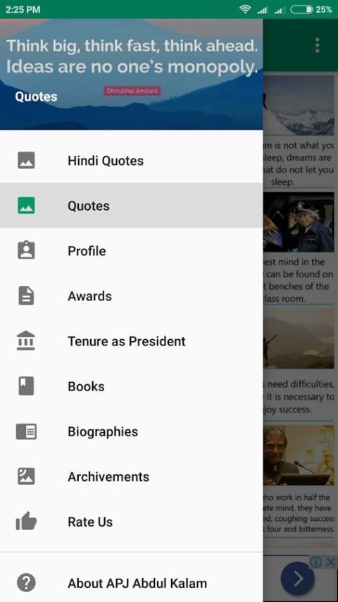 Aplikasi ini Tentang Dr.A.P.J.Abdul Kalam Quotes.