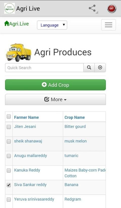 Petani dari semua hasil pertanian (Biji-bijian, Pulsa, Sayuran, Buah, Bunga, Rempah-rempah, Kayu, Peternakan, Aqua, Biji, dll.) Dapat menambahkan rincian tanaman mereka secara online untuk dijual.