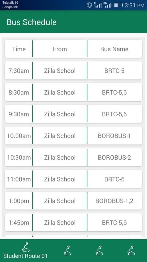 • Jadwal bus untuk semua root diatur dalam jenis simulasi yang membantu pengguna untuk mengetahui bus dari halte.