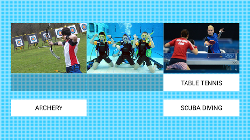 Anak-anak dapat mempelajari nama-nama olahraga dan bagaimana cara mengucapkan nama mereka.Aplikasi ini adalah jalur belajar yang sangat baik untuk anak-anak.