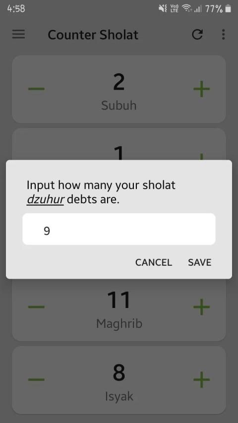 This app is very useful for people who have sholat debt for saving it