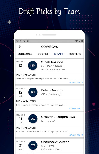 ✓ NFL draft picks oleh tim untuk musim NFL mendatang.