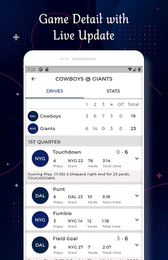 ✓ Setiap jam permainan, batas waktu, kepemilikan termasuk dengan skor langsung.