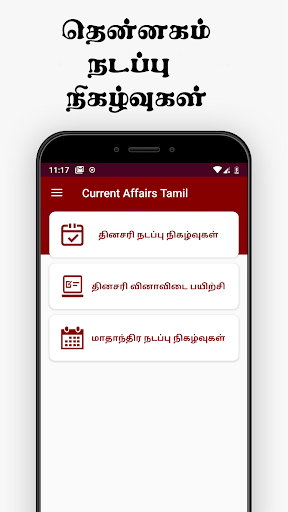Aplikasi kami menyediakan urusan saat ini di Tamil yang berguna untuk ujian kompetitif. Jangan ragu untuk mengirim email kepada kami saran Anda untuk perbaikan dalam aplikasi ini