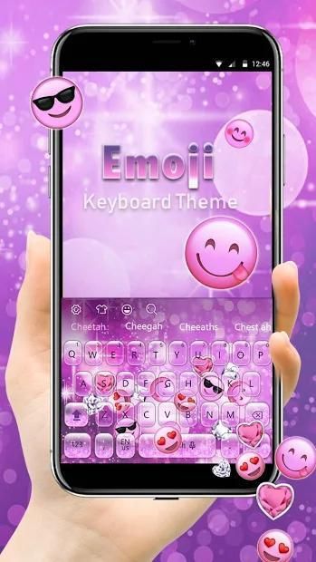 Ingin tema Keyboard emoji pink berkilau berkilauan? Instal dan hiasi keyboard Anda dengan tema keyboard emoji emoji merah muda yang indah sekarang!