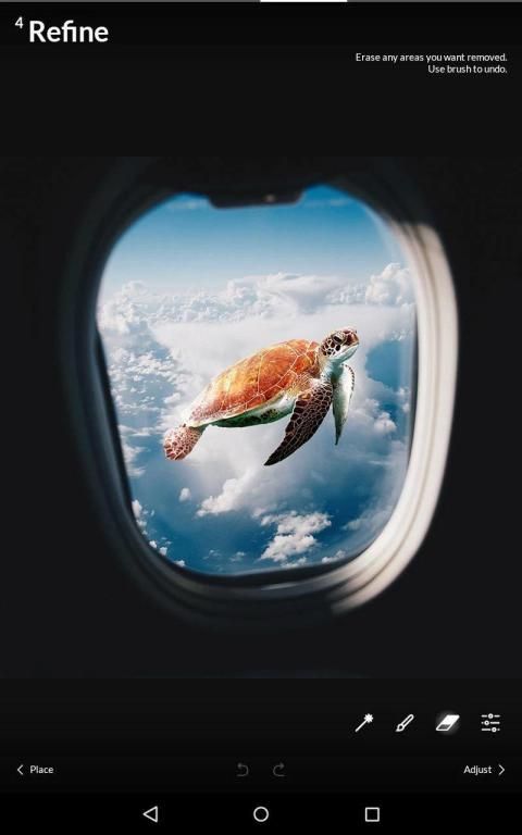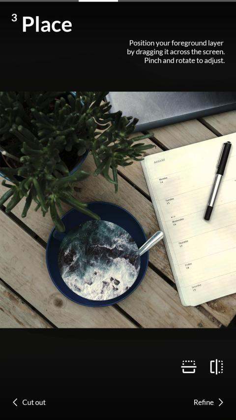 3. Tempat - Posisi lapisan foreground dengan menyeretnya di layar. Mencubit dan memutar untuk menyesuaikan.