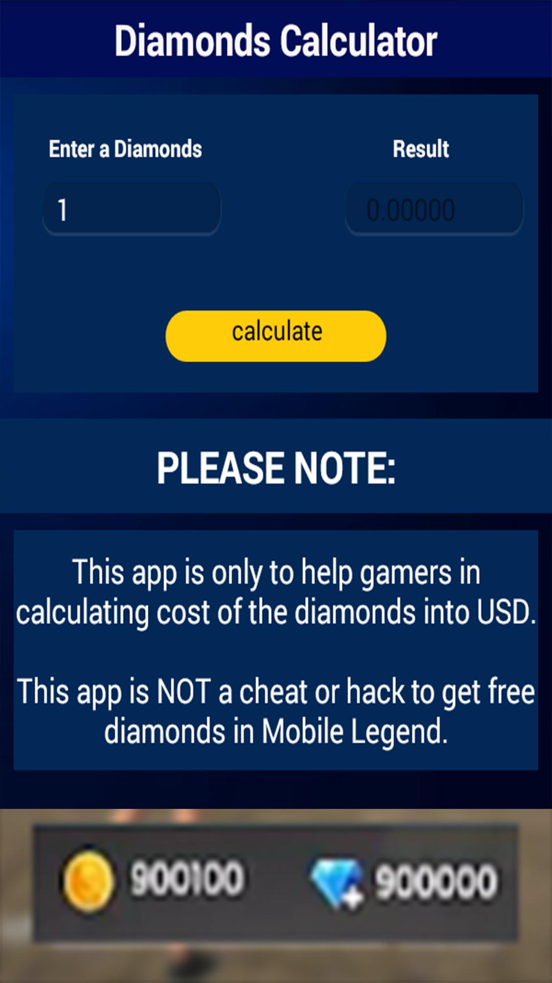 This app may help you to calculate the number of diamonds you need to buy in usd.
