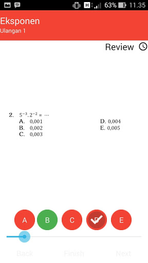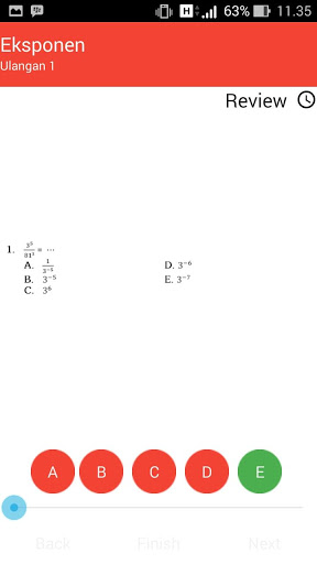 Aplikasi ini menampilkan berbagai tipe soal pada tiap bab nya, disertai dengan kunci jawaban dan nilai sebagai evaluasi atas latihan yang dikerjakan, sehingga akan sangat membantu menguasai materi Matematika. Selain Evaluasi per BAB Aplikasi ini juga dilengkapi dengan latihan soal ujian MID semester, dan Ujian Semester.