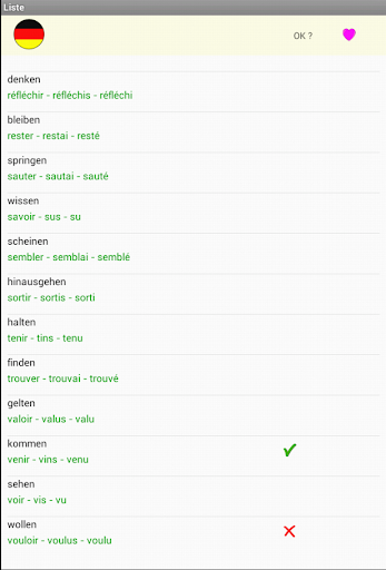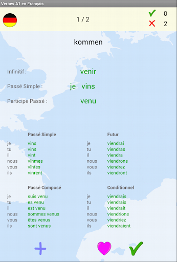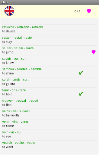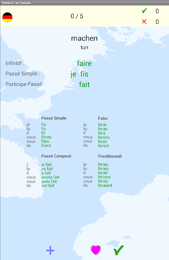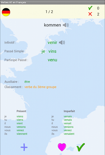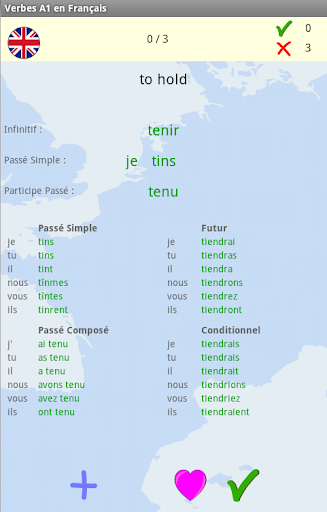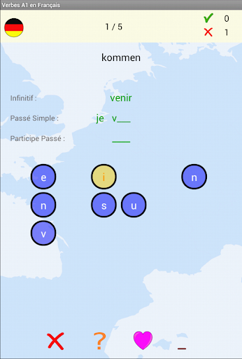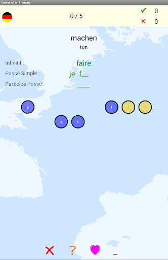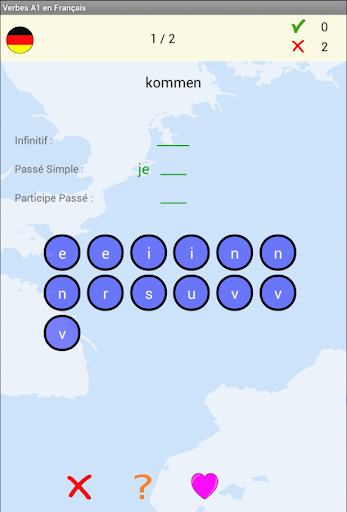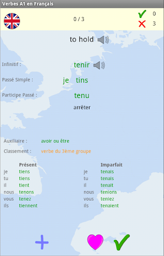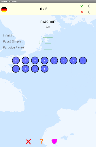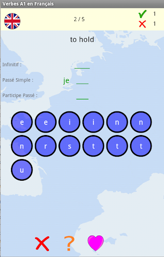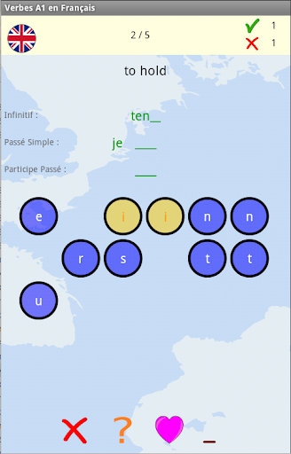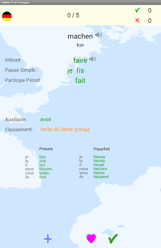 Tujuan dari game ini adalah untuk meletakkan huruf-huruf kata kerja Prancis yang tersembunyi dalam urutan yang benar.Ketika kata kerja ditemukan, konjugasi kata kerja Prancis ditampilkan pada 6 bentuk.Kata kerja diucapkan jika opsi yang sesuai diaktifkan.