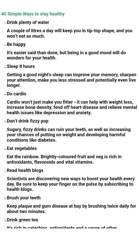 Hal penting lain tentang aplikasi ini. Di sini Anda akan mendapatkan 40 Cara untuk Tetap Sehat. Dijelaskan dengan jelas dengan gambar.