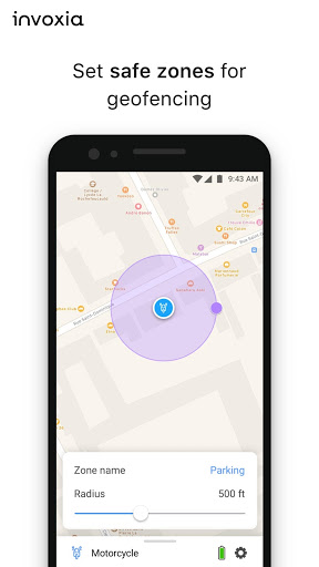 Tentukan zona geografis di aplikasi untuk tempat-tempat penting Anda: Rumah Anda , kantor, sekolah anak-anak Anda, atau di tempat lain! Terima notifikasi ketika pelacak Anda masuk atau meninggalkan area ini, jadi Anda selalu tahu.