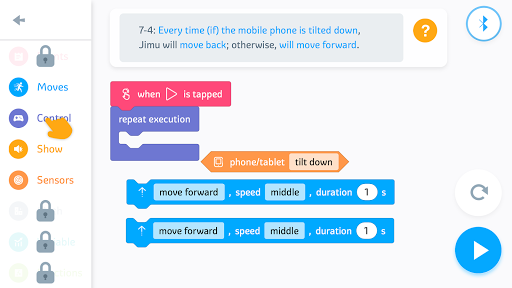 Aplikasi ini menggunakan instruksi 3D, 360 ° untuk memandu pengguna langkah demi langkah melalui proses pembangunan. Pengkodean yang memblok membuat pemrograman menjadi sederhana dan menyenangkan. Seret dan lepas blok yang saling terkait dari urutan yang dapat disesuaikan untuk membuat robot JIMU Anda bereaksi atau menggunakan sistem PRP (Pose, Record, Play) untuk lebih menyenangkan. Jika Anda baru mengenal coding, aplikasi ini berisi pelajaran yang menyenangkan bagi Anda untuk menjadi master coding Blockly. Untuk inovator sejati, aplikasi ini juga memungkinkan pengguna untuk merancang kreasi robot JIMU yang disesuaikan dan membaginya dengan komunitas.