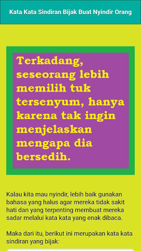 Kata kata sindiran tapi bijak merupakan salah satu cara membuat kode peka terhadap seseorang, dimana Anda menggunakan kata kata bijak sebagai sarana untuk menyindir seseorang, bisa saudara, teman, sahabat, pacar, ataupun mantan pacar yang dapat disindir menggunakan kata bijak penuh makna.