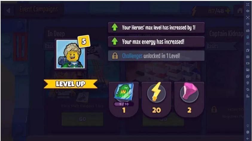 • Tingkatkan hingga Mendapatkan Ubin dari Pahlawan Acak