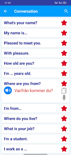 * percakapan : Belajar Swedia dengan kalimat percakapan Swedia gratis setiap hari.Sangat berguna bagi Anda kapan harus bepergian dan keluar tanpa jaringan!