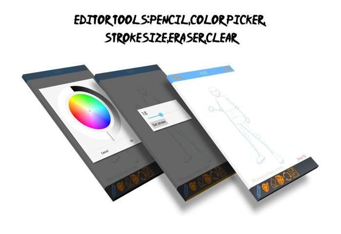 ✔️️ Editor Tools: Pensil, ColorPicker, Strokesize, Eraser, Clear