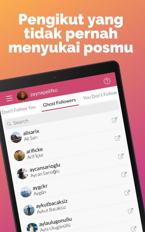 Liker Analyzer menyediakan analisis mengikut dan pengikut. Pengguna yang tidak mengikut kembali dan pengguna yang tidak diikuti kembali dicantumkan. Bahkan melalui Liker Analyzer profil Instagram pengguna yang relevan dapat dikunjung. Itu juga mengungkapkan pengikut bayangan yang mengikuti Kamu tetapi belum pernah menyukai posMu sebelumnya. Kamu dapat menganalisis semua pengikut kamu secara detail dengan Liker Analyzer.