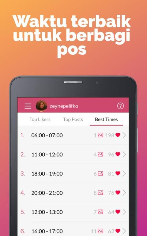 Aplikasi Liker Analyzer mengurutkan posting paling populer dan menunjukkan tanggal pengiriman. Selain itu, untuk Kamu aplikasi menganalisis interval waktu ketika Kamu mendapatkan interaksi terbanyak. Untuk ini, Liker Analyzer memiliki layar yang menunjukkan berapa banyak suka yang diterima oleh posting mana dan kapan. Semuanya untuk tetap menjadi akun populer di Instagram.