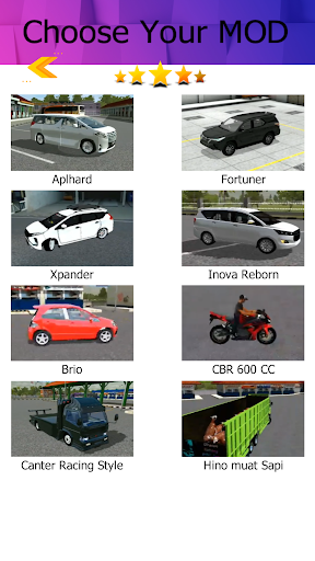Ini merupakan modifikasi kendaraan yang seluruhnya telah dan akan meramaikan game bussid ini, seperti mod mobil pribadi ; mod jazz, mod avanza, serta mod elf bussid yang sedang banyak diinginkan para bussidmania negeri.