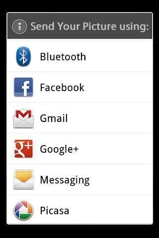 Kemudian Anda dapat mengirim gambar yang dihasilkan di Facebook dan berbagi dengan teman-teman. Selanjutnya, dengan menggunakan aplikasi, Anda dapat menyimpan gambar pada kartu SD, atau mengirim ke teman Anda melalui e-mail.