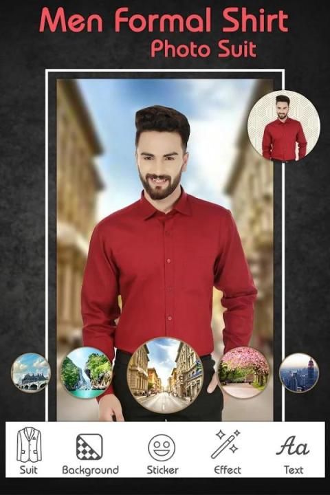 Men Shirt Photo Editor - Man Kemeja Photo suit memiliki koleksi baju yang cocok untuk semua orang. Coba semua koleksi dress ini, latar belakang set dan stiker menyimpan dan berbagi foto dengan teman-teman Anda.
