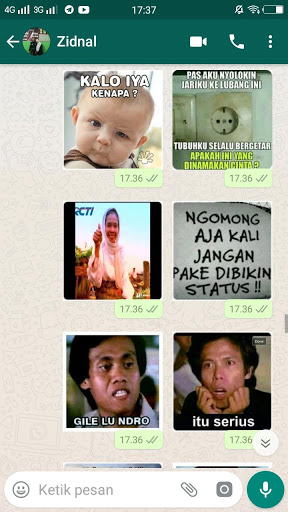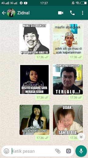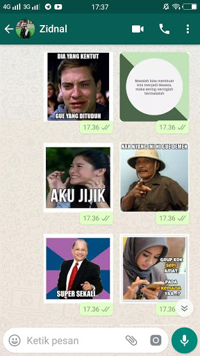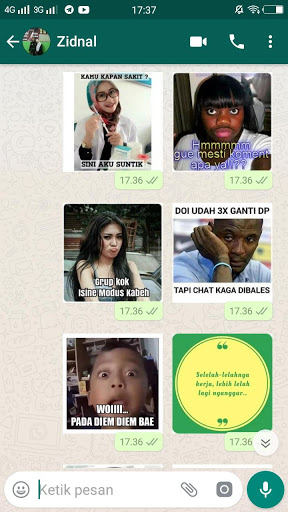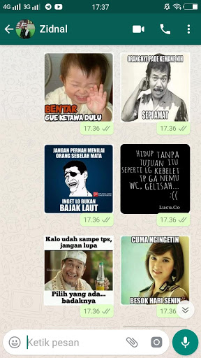 5. Buka aplikasi WA Anda, lalu pilih menu sticker. maka Anda akan menjumpai beberapa sticker yang baru anda download pada aplikasi chat Anda.
