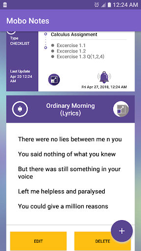 MobOnote® mengkategorikan pengalaman menulis Anda menjadi teks kertas yang diformat sederhana dan daftar periksa yang harus dilakukan. Daftar catatan yang disimpan akan ditampilkan pada layar beranda aplikasi Anda dengan semua fitur utama yang terkait dengan catatan.