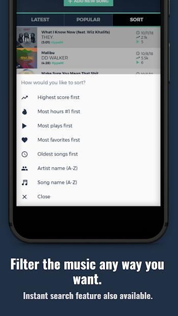 ✓ Upload new songs by uploading an MP3 or simply submit a link to a SoundCloud, HypeM, or MP3 page