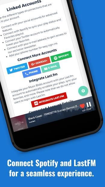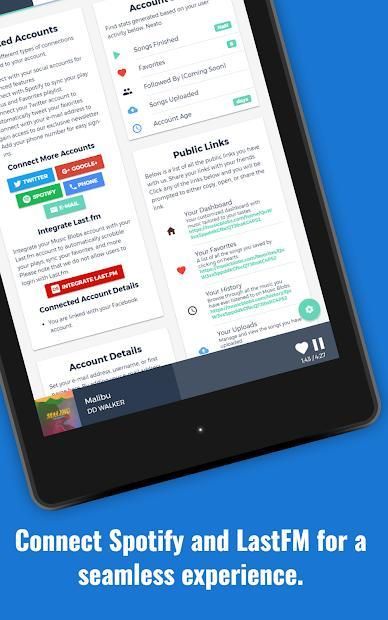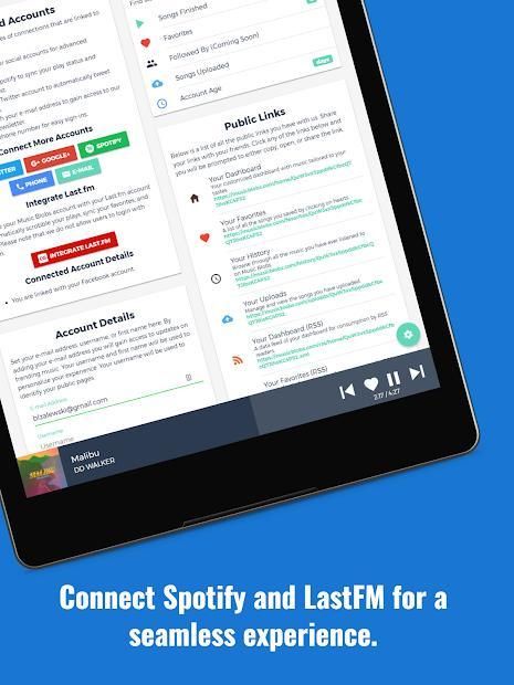✓ Ability to sync data with Spotify and LastFM (