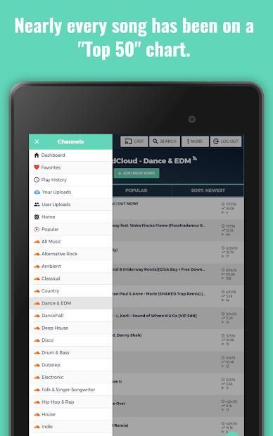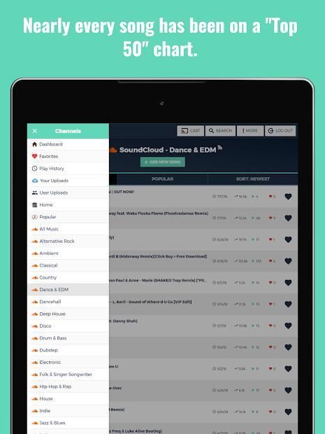 streaming site's "Top 50" charts. When a track experiences success on one of these "Top 50" charts, it's added to the catalog. Users help out by uploading music and submitting links they want us to monitor. On top of that, it integrates a lot of features that make your experience better.