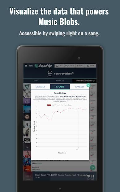 Music Blobs is data-driven. It is powered by our users too. You can upload a song or simply share a link and we'll take care of the rest by automatically acquiring metadata from multiple providers. Our users listening patterns help us improve your listening experience even more. With all this data, you can filter music using over a dozen methods.