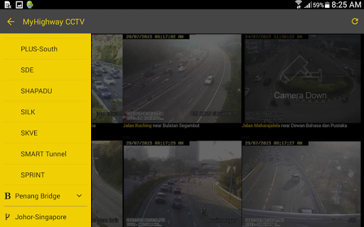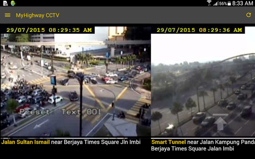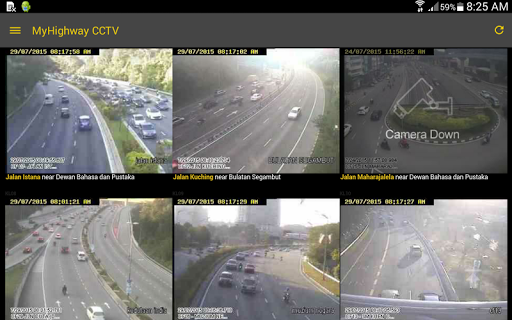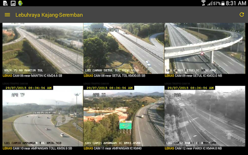 CCTV langsung lalulintas di Malaysia, direfresh setiap 4 saat. Semak laporan kamera video lebuh raya Malaysia untuk kesesakan lalu lintas dan keadaan jalan raya tempatan dari telefon bimbit. Mesra dan cepat loading untuk memaksimumkan keberkesanan masa anda.