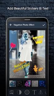 Negative Photo Effect is way to make photo with negative effects will make your pics look unique! It crete a negative of your photo.