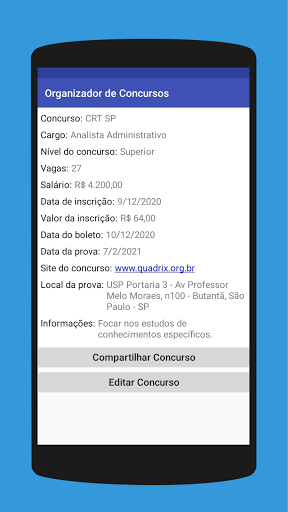 Aplikasi ini dibuat untuk membantu Anda mencapai tujuan Anda untuk memenangkan kantor publik.Jika Anda mengatur, Anda dapat menghemat waktu dan selalu memiliki informasi dari semua kontes yang ingin Anda ikuti. .Vai akses ke tautan ke situs kontes terbaik.Semua dengan cara yang sederhana dan intuitif.