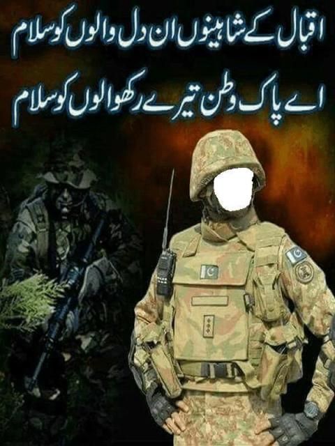 Pakistan Army is one of the best armies around the world. It is loved by all the people of its country. The soldiers of Pak Army are filled with the motive of Shahadat. That is why Pak Army always have brave soldiers with it to fight the enemies. This app has been designed for the lovers of Pak Army. You just have to upload you picture or take a selfie, adjust it to the frame, add some beautiful sticker and then share it with friends or save to your mobile. Hope you enjoy this app.