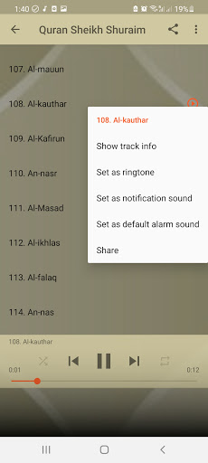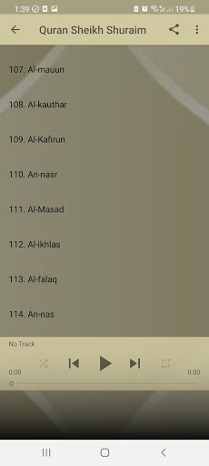 Aplikasi ini berisi versi audio dari Al-Quran yang lengkap yang dibacakan oleh Sheikh Saud Al-Shuraim yang terkenal.Ini efektif bekerja dengan WiFi.Ini juga mendorong menghafal Quran dengan daftar yang sering.Saya harap pengguna akan menemukan aplikasi thie, membantu.Anda juga dapat mengunjungi tautan saya di Google Play untuk banyak pembeli dan aplikasi Islam.